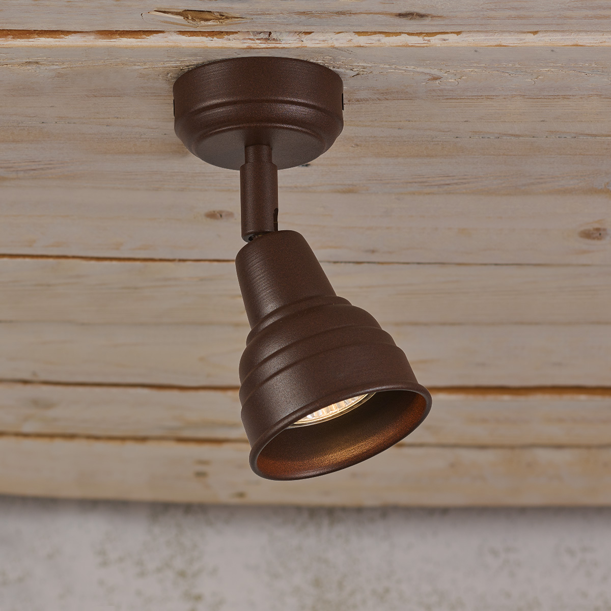 Brown rust rustic spotlights of the IOS collection 8026C/1. Retro light fixture designed and produced in Athens, Greece by MAVROS Lighting.