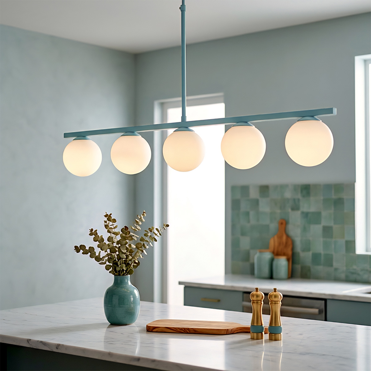 Modern dining room light fixture of the SPHERE collection 5025Ν/5. Light fixture with a veraman metal base and five opaline spheres.
