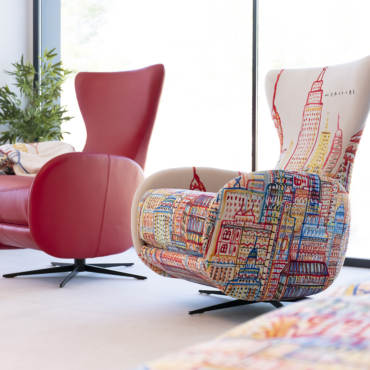 Η πολυθρόνα MONDRIAN κατασκευάζεται στην Ισπανία από την εταιρεία Fama Sofas και εισάγεται στην Ελλάδα από την εταιρεία ΜΑΥΡΟΣ.