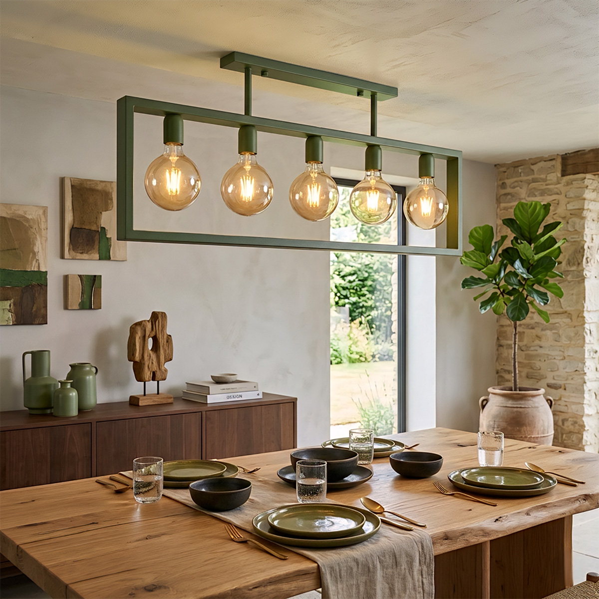 Το φωτιστικό οροφής ΘΑΣΟΣ διαθέτει μεταλλικό πλαίσιο σε χρώμα πράσινο σαγρέ και ξεχωρίζει για τον χειροποίητο, βιομηχανικό σχεδιασμό του.