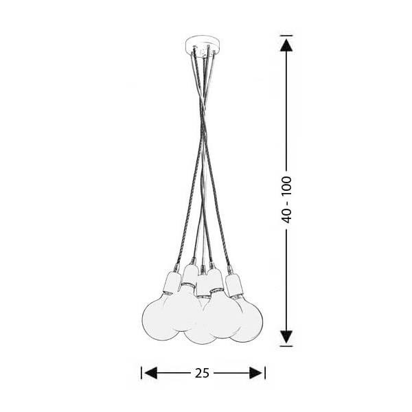 5φωτο φωτιστικό με χρωματιστά καλώδια ΚΑΛΩΔΙΑ 5-bulb chandelier with colorful cables
