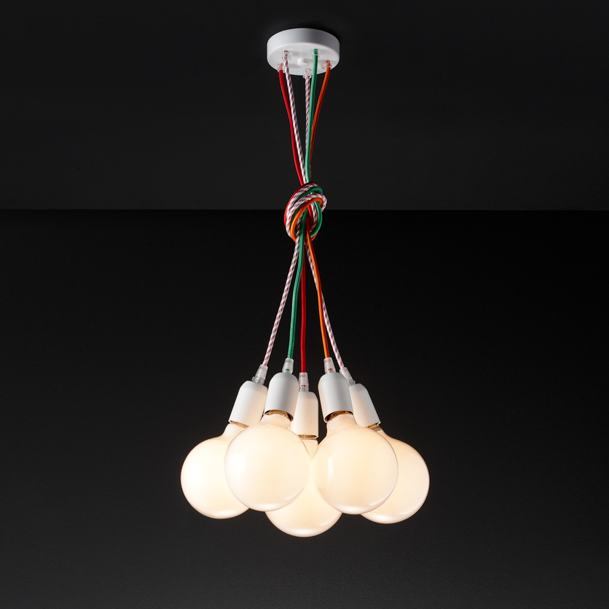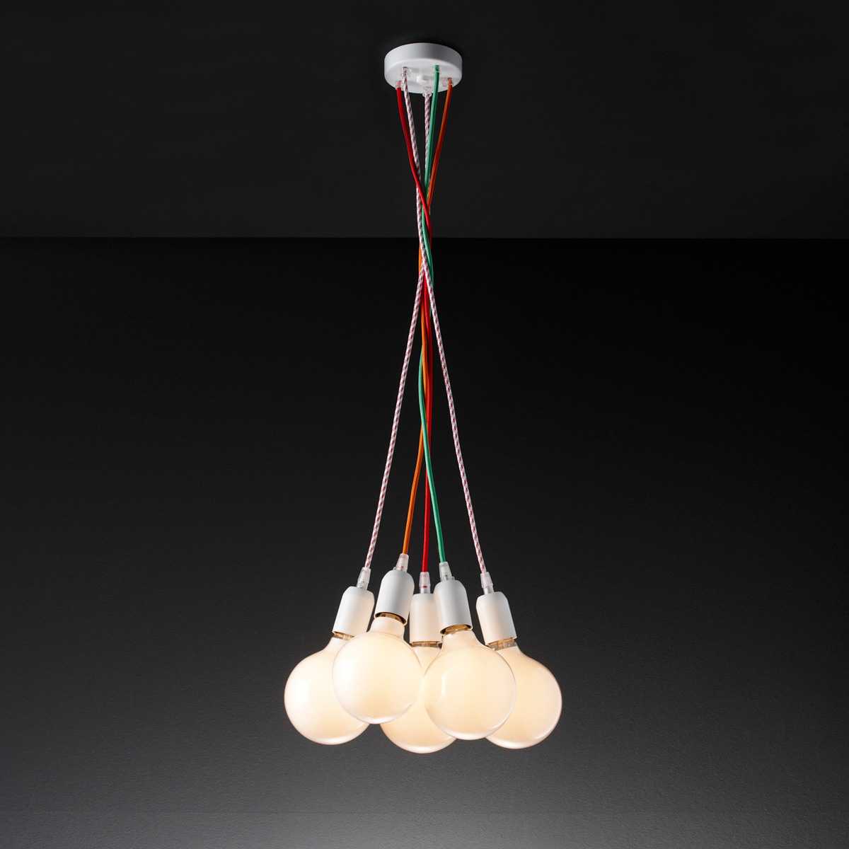 6φωτο φωτιστικό με χρωματιστά καλώδια ΚΑΛΩΔΙΑ 6-bulb chandelier with colorful cables