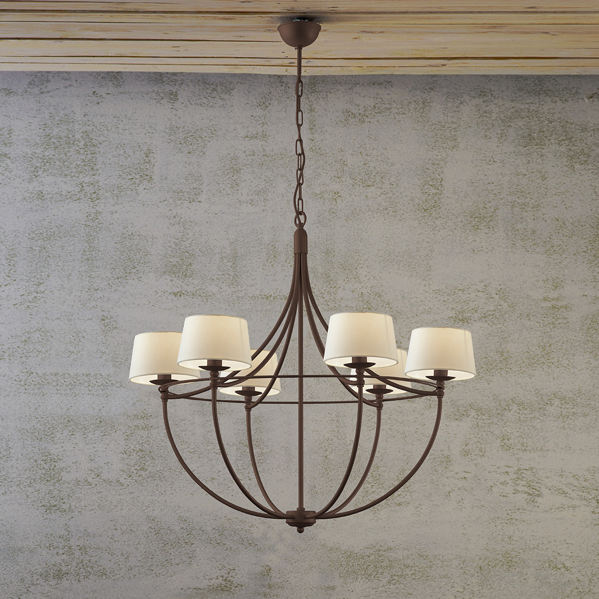 Παραδοσιακό 6φωτο φωτιστικό σε εκρού χρώμα VILLAGE ecru rustic 6-bulb chandelier