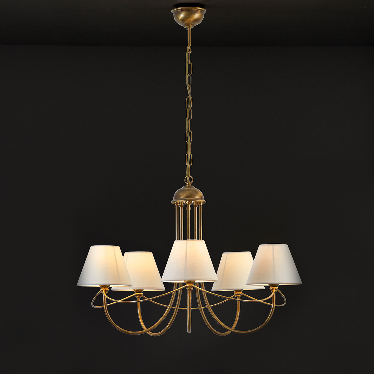 Κλασικό 5φωτο φωτιστικό με καπέλα της συλλογής ΓΥΘΕΙΟ 59508/5K. Το κλασικό φωτιστικό με καπέλα και ορειχάλκινο οξειδωμένο σκελετό σχεδιάζεται και κατασκευάζεται στην Ελλάδα από την εταιρεία ΜΑΥΡΟΣ.