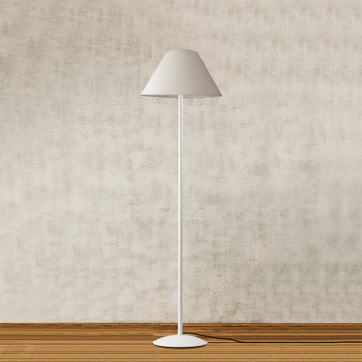 Ρουστίκ φωτιστικό δαπέδου με υφασμάτινο καπέλο της συλλογής ΝΑΞΟΣ-2 6028CK. Ιδανικό να σταθεί σε παραδοσιακούς διακριτικούς χώρους που ζητούν συμπληρωματικό φωτισμό καθώς αποπνέει μια vintage αισθητική.