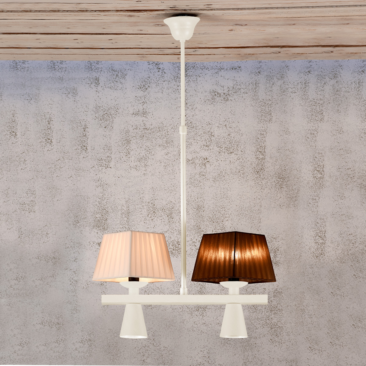 Τετράφωτο φωτιστικό ρουστίκ SMART με καπέλα 59533C/2+2. Το κρεμαστό φωτιστικό σε εκρού χρώμα σχεδιάζεται και κατασκευάζεται στην Ελλάδα από την εταιρεία ΜΑΥΡΟΣ.